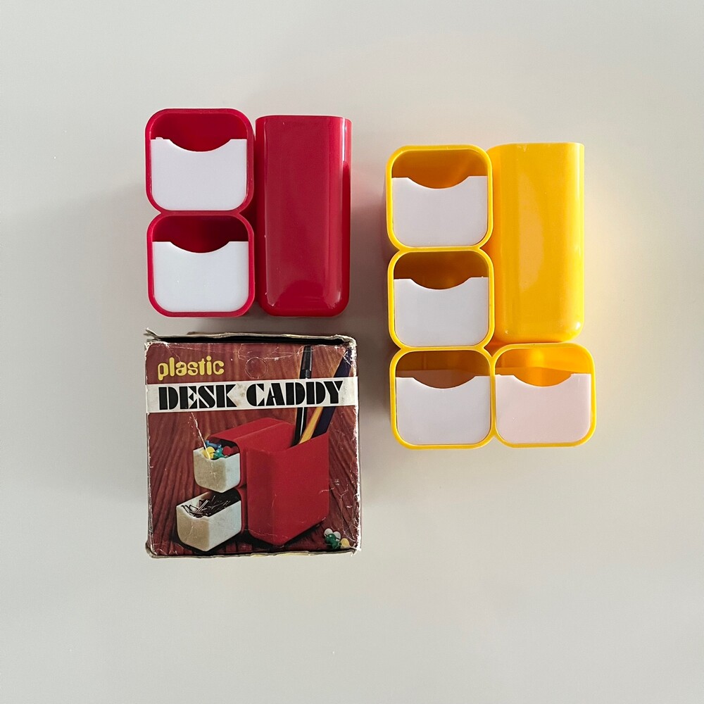 1970s Vintage Plastic Desk Office Organizer Caddy SET