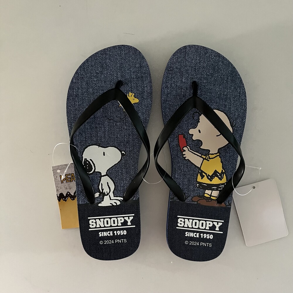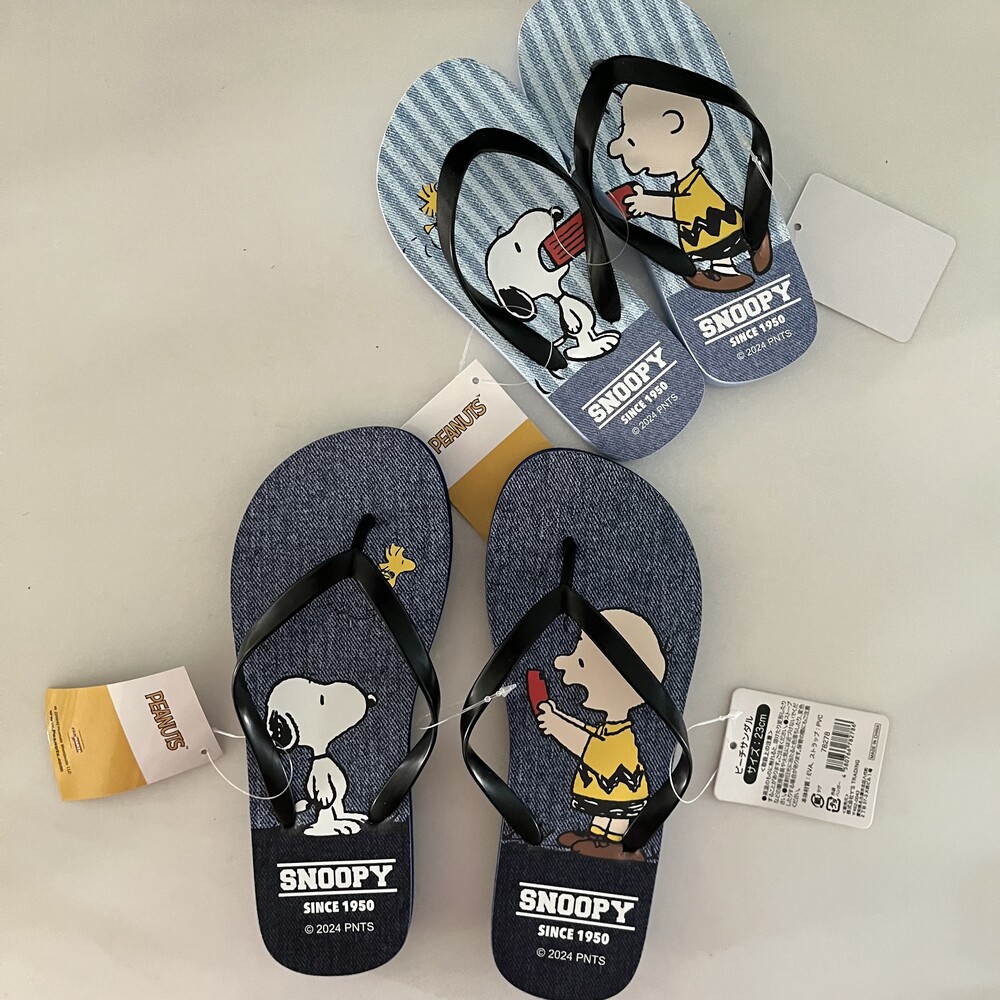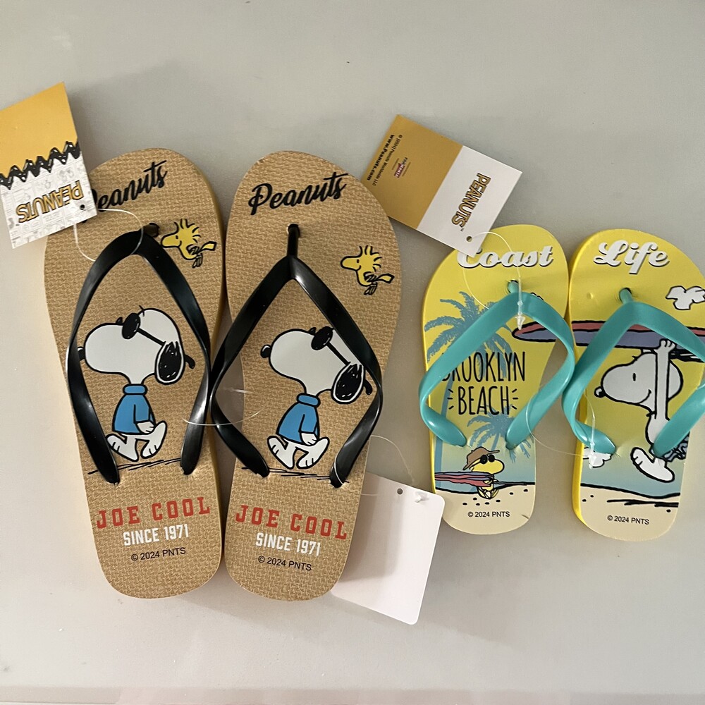 스누피 정품 플립플랍 성인용 이에요! 여름철 데일리 또는 비치용으로 준비되어 있으며 키즈용도 준비되어 있어요 !