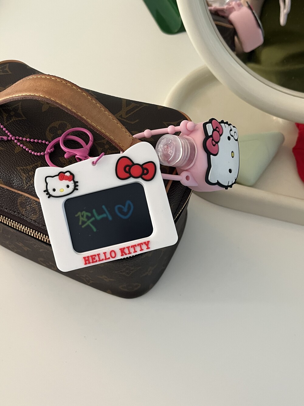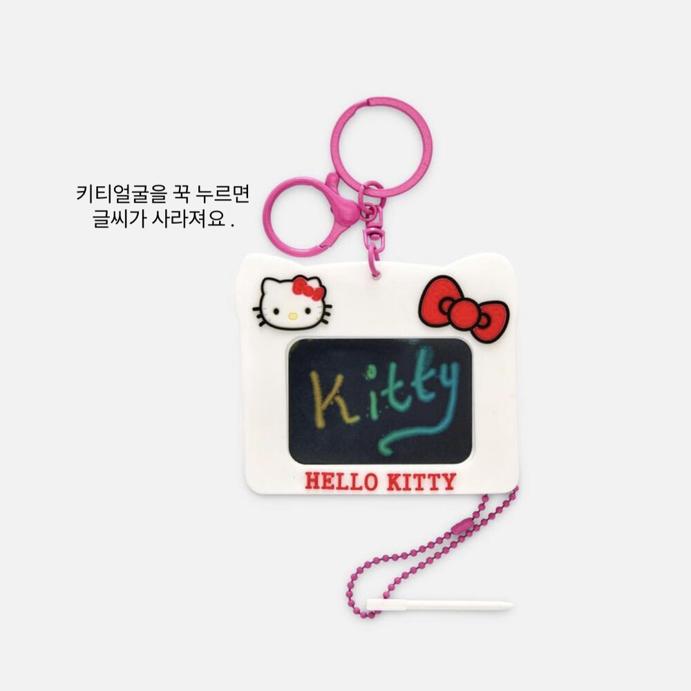 이제품 보는 순간 어린 시절 추억이 새록새록 떠오른 키링이에요 ! 칠판 키링이구요 ~먼저 뒷 부분에 열쇠를 열릴 방향으로 켜고 글씨를 적을 수 있어요 . 그리고 열쇠를 잠금을 하면 적은 글씨 그림이 지워지지 않아요 ! 그리고 다른 글씨 또는 그림을 적고 싶으실때는 잠금을 풀고 키티 얼굴을 누르신 후 사용 하시면 됩니당 🩷