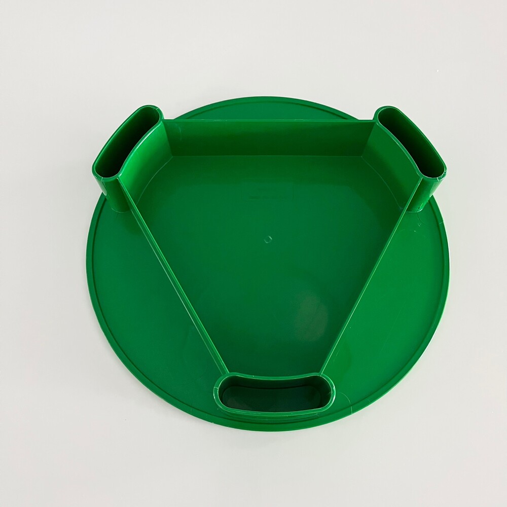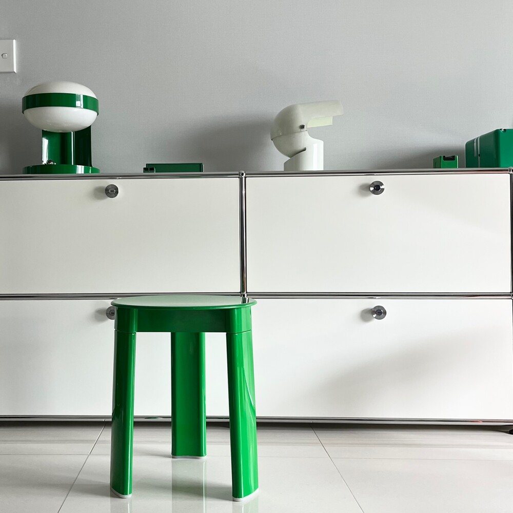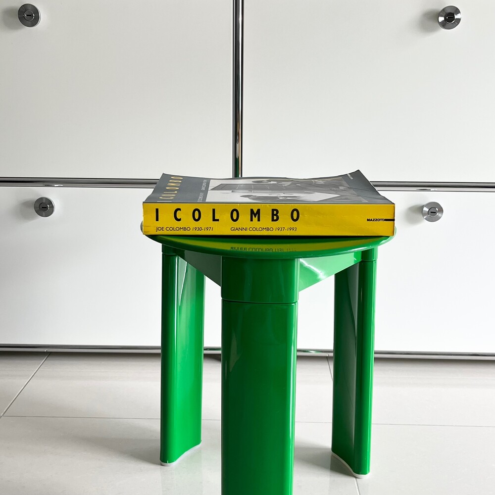 -1970년대 디자이너 Olaf von Bohr 가 Gedy 사를 위해 디자인한 트리오 스툴이에요. 그린 컬러의 ABS 플라스틱 소재로 만들어져 견고합니다. 원래의 용도는 스툴이나 책 ,화분,조명 소품 오브제를 올려두는 사이드 테이블로 사용가능 하여 유용한 아이템 입니다. 3개의 다리는 분리가 가능하여 이동 보관이 편리해요. 오렌지 컬러를 포인트로 어느공간에서 사용할수 있어요. 다리 하나 하단에 살짝의 크랙이 존재 하나 사용에는 아무런 지장이 없어요.사진으로 확인해주세요.그부분을 제외한 나머지 컨디션은 좋은편이나 빈티지 특성상 세월의 흔적은 존재해요.