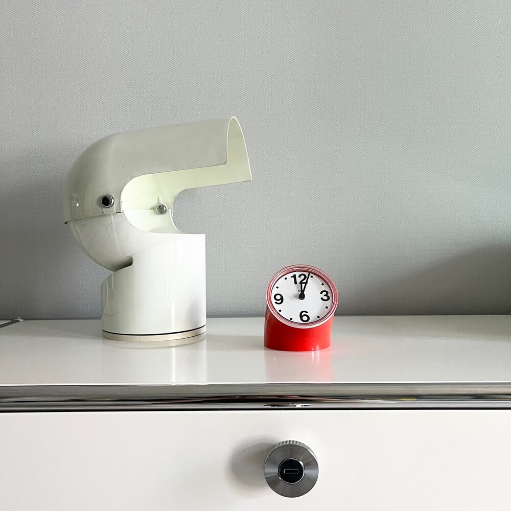 -1970년대 이탈리아에서 설립된 주방,생활용품 브랜드 알레시에서 80년대 생산한 오렌지 컬러의 탁상 시계입니다.건전지로 작동하며 현재 오렌지 컬러는 단종된 컬러입니다. 오렌지 컬러가 포인트 이며 옆 부분 곡선이 유니크한 디자인 입니다 . 빈티지 제품으로 입도 되었으나 컨디션은 미사용품에 가까워요.