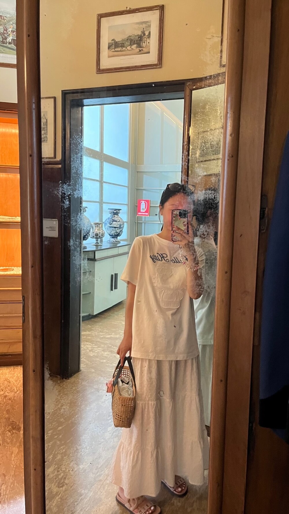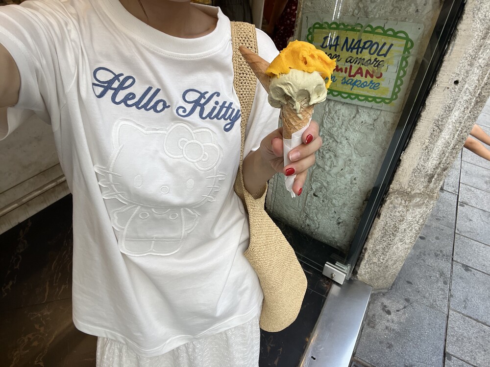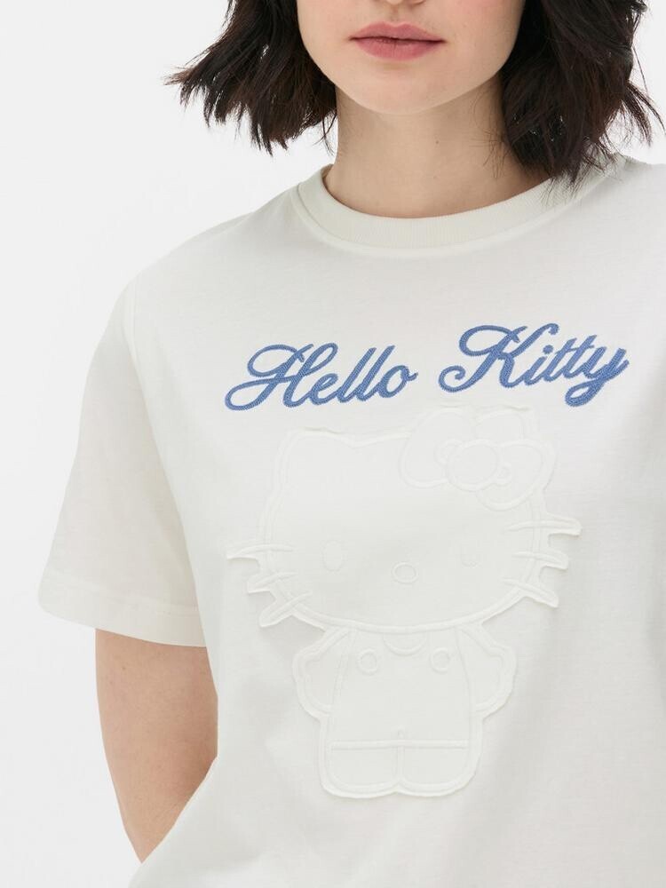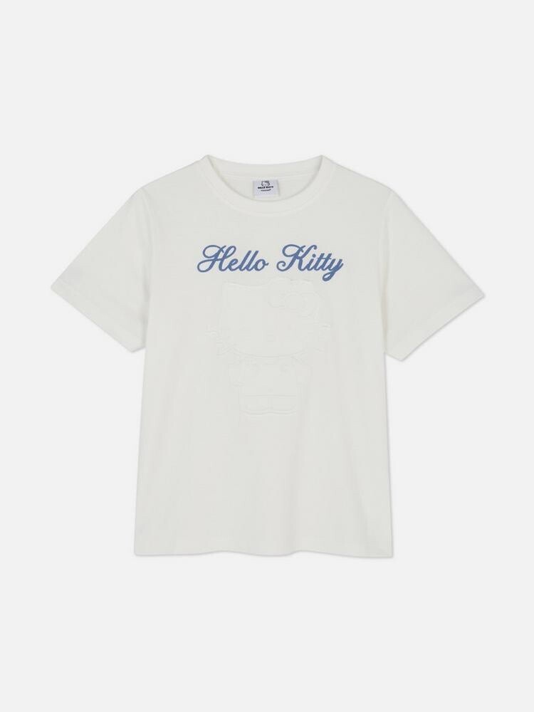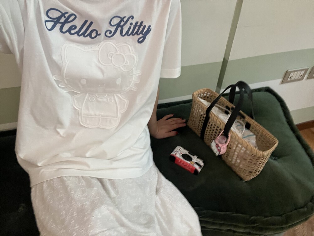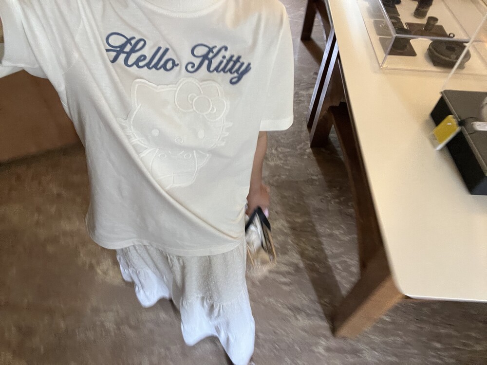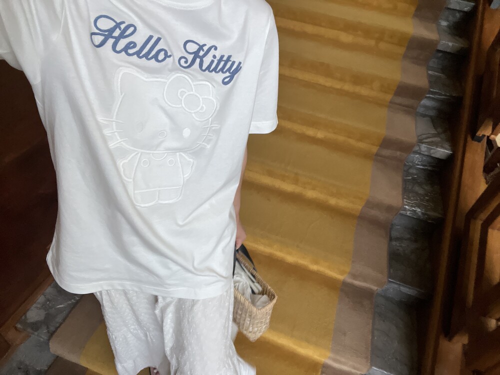 화이트 컬러의 티셔츠에 블루 필기체로 Hello Kitty가 적혀 있어 포인트가 되는 아이템이에요 🩵🤍 넉넉한 핏으로 편하게 입기 좋고, 귀여운 키티가 그려져 있지만 과하지 않아 데일리로도 부담 없이 즐기실 수 있어요. 은은하게 키티 감성을 담은 티셔츠랍니다 :)