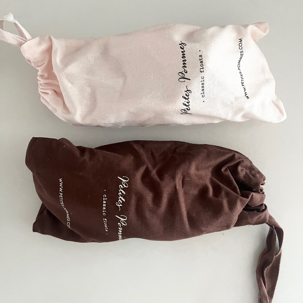 쁘띠뽐므는 포장용품을 일회용 플라스틱에서 100% 재활용가능한 면 파우치로 교체했습니다.다음에 사용할 때까지 안전하게 보관할 수 있도록 유기농 면파우치에 담겨 배송됩니다. 또한 작은 구멍이 난 경우를 대비해 수리용 패치가 포함되어 있습니다.