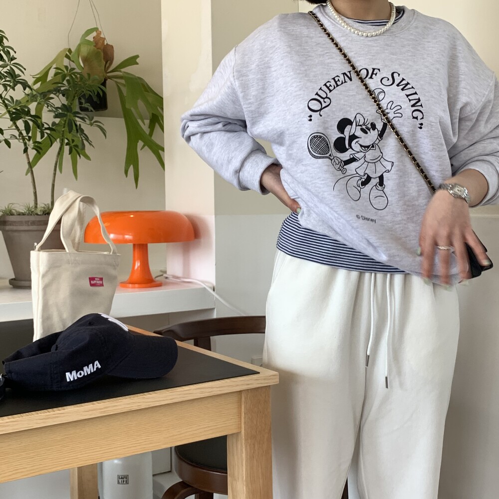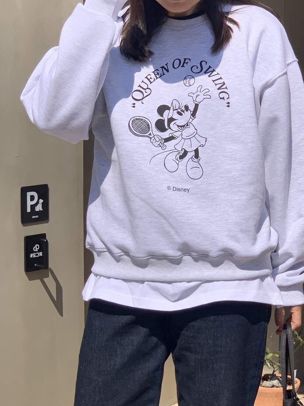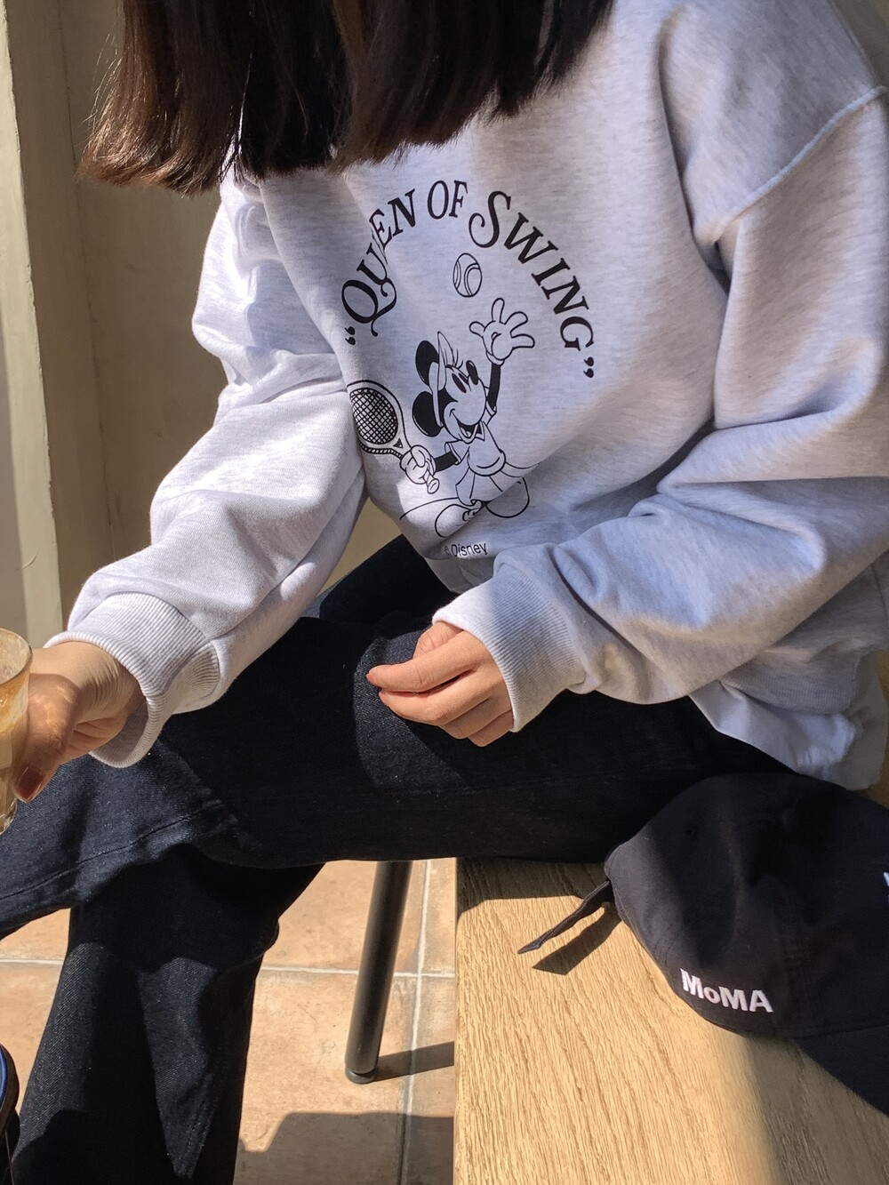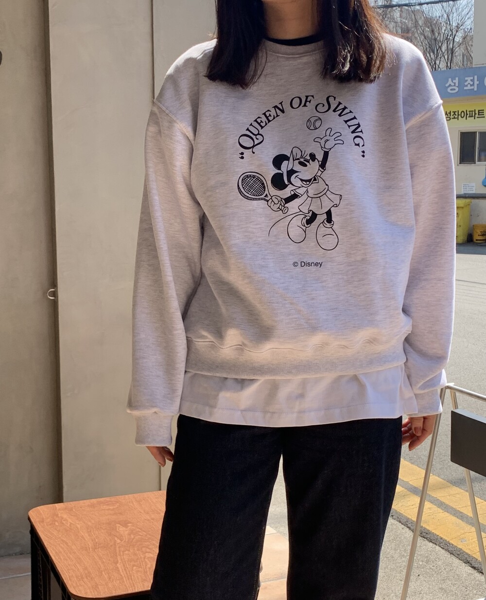 반팔티와 같은 테니스 라인으로 나온 맨투맨이며미니마우스의 귀여운 프린팅이 그려져는 맨투맨입니다.