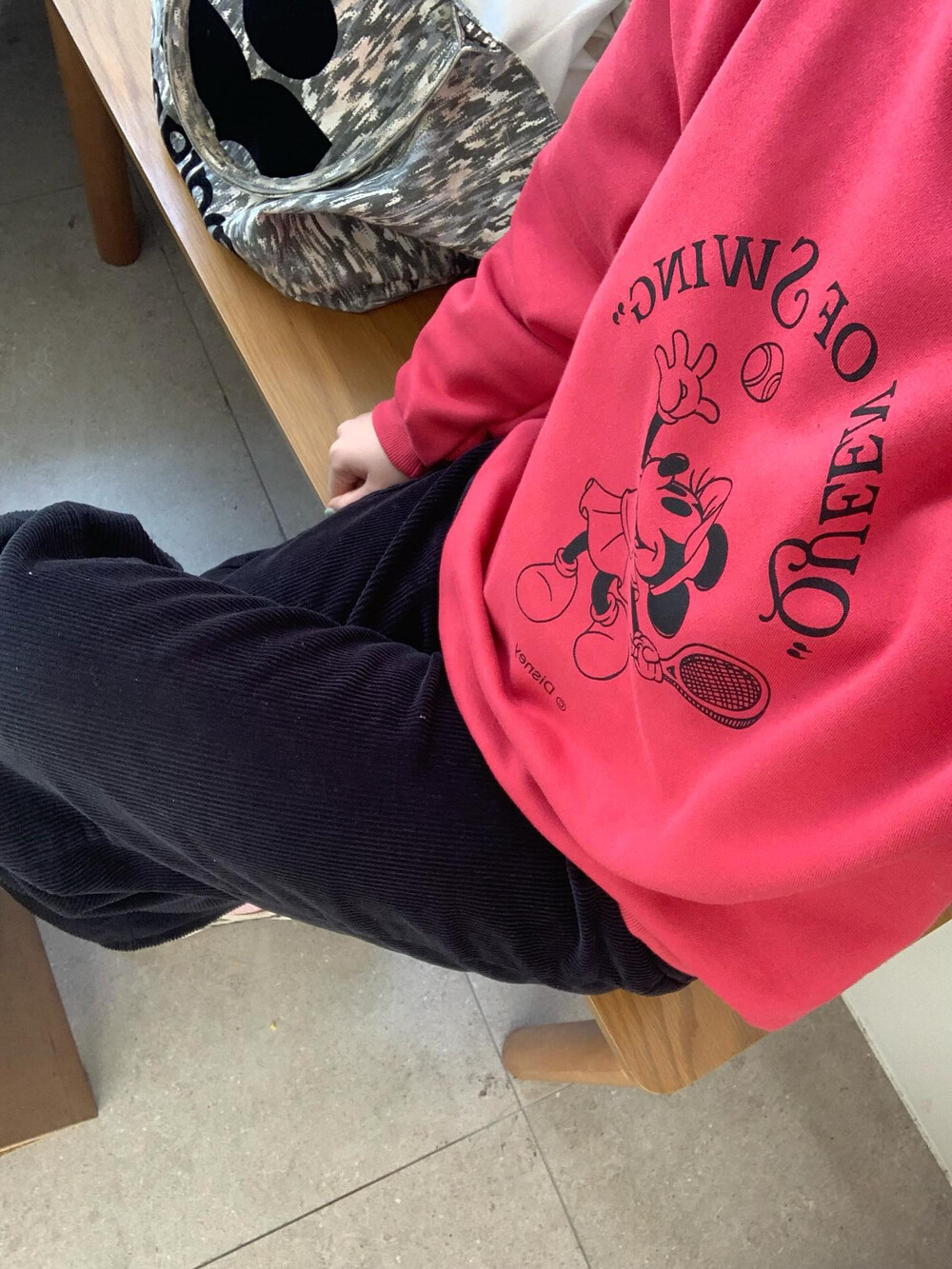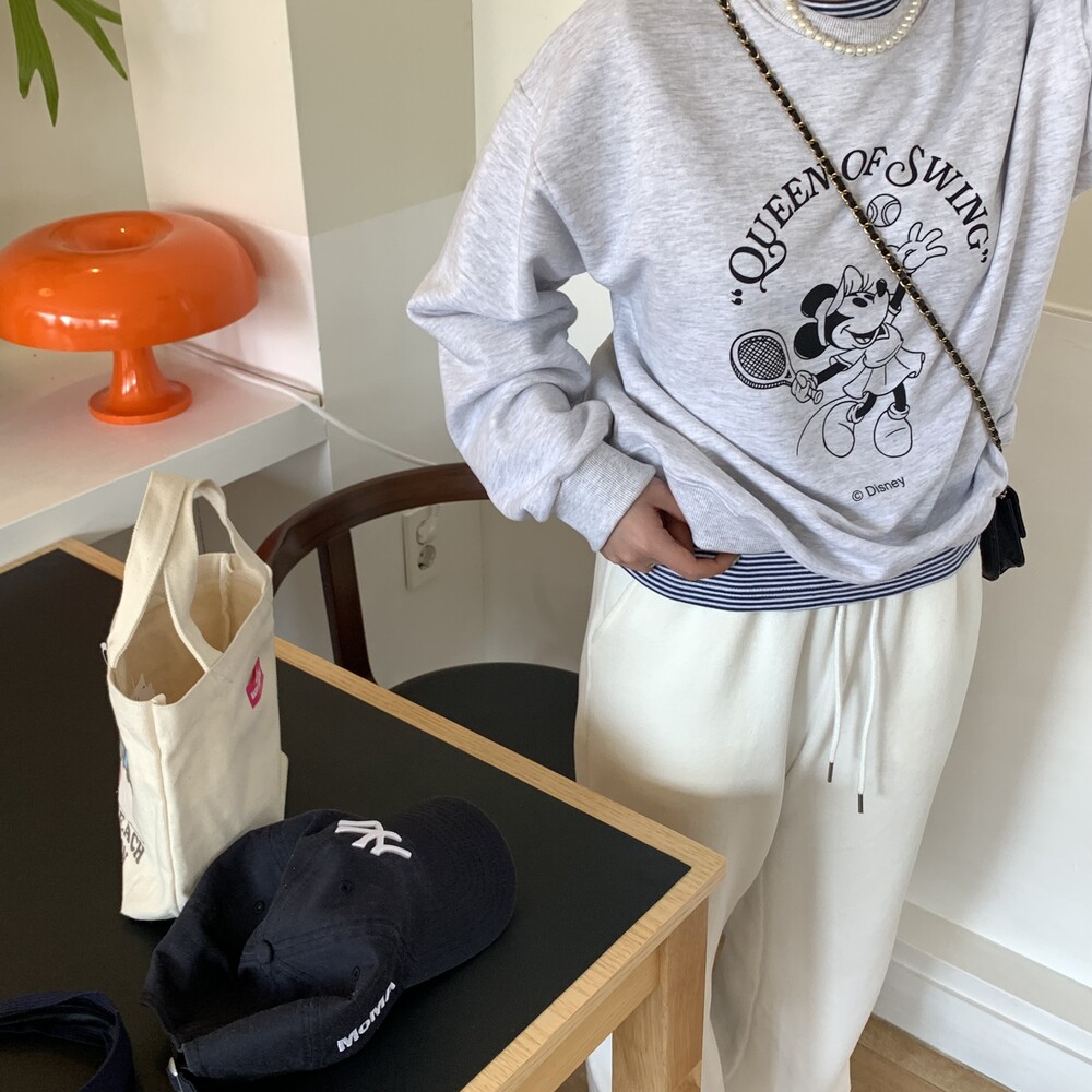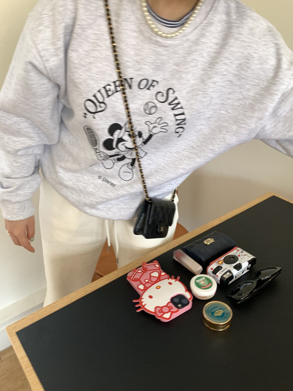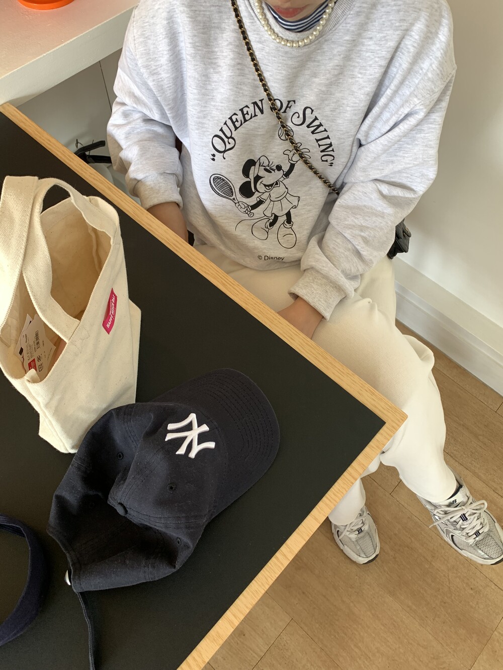 반팔티와 같은 테니스 라인으로 나온 맨투맨이며미니마우스의 귀여운 프린팅이 그려져는 맨투맨입니다.