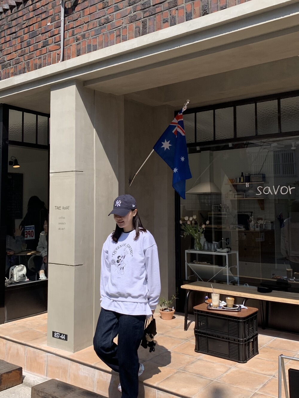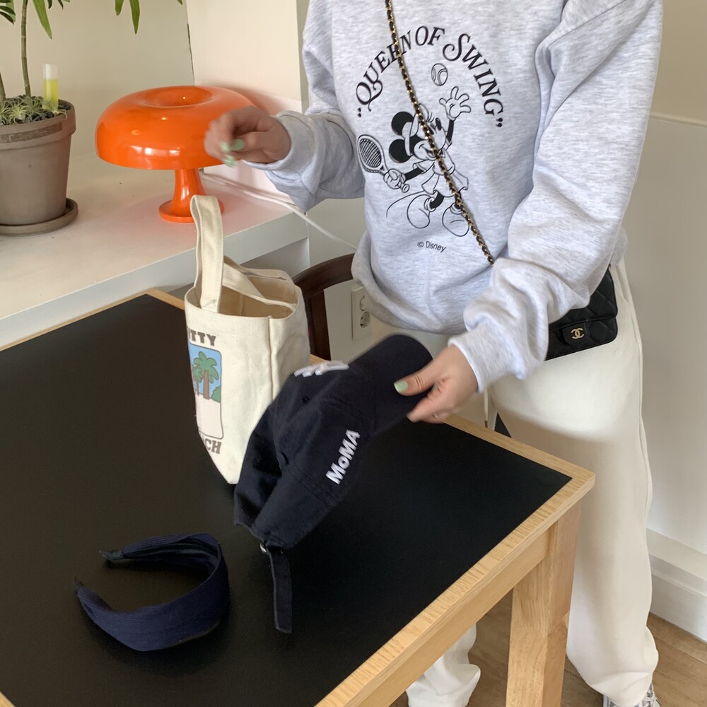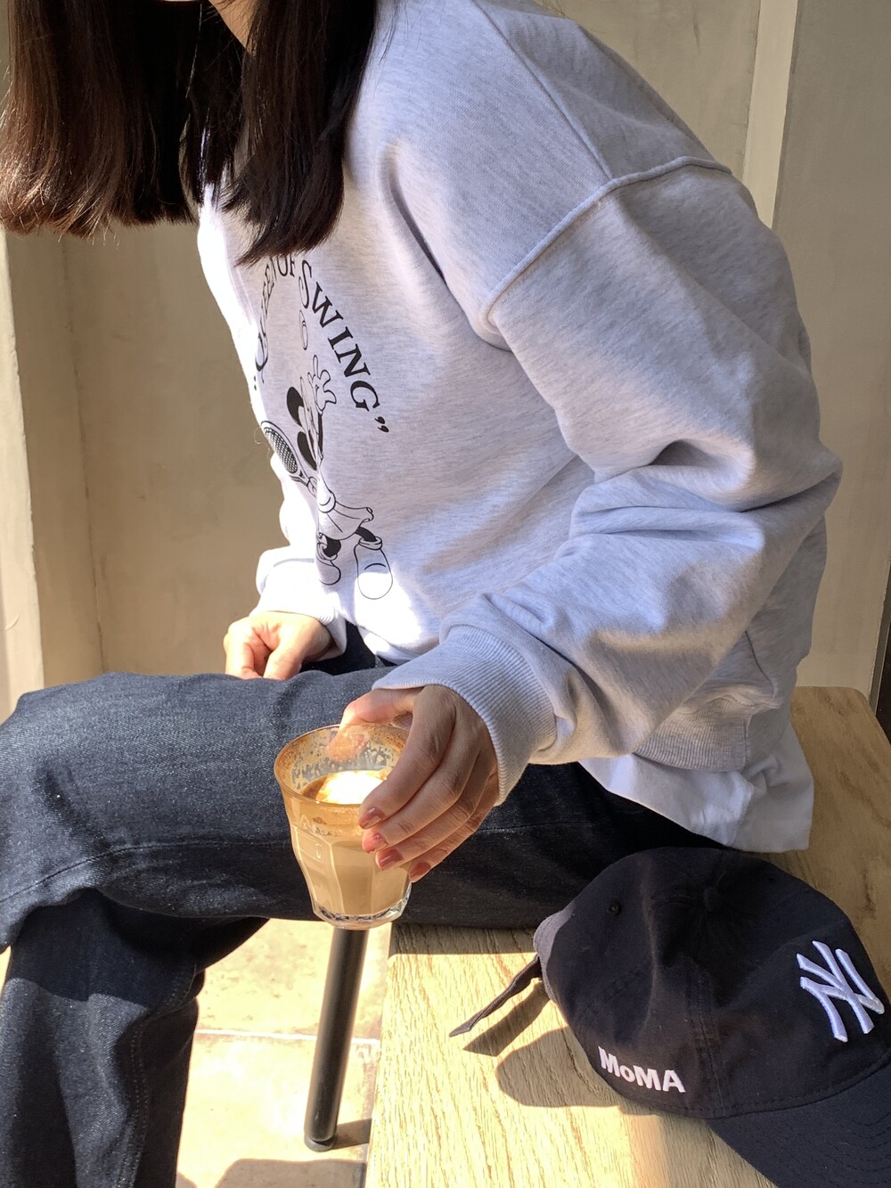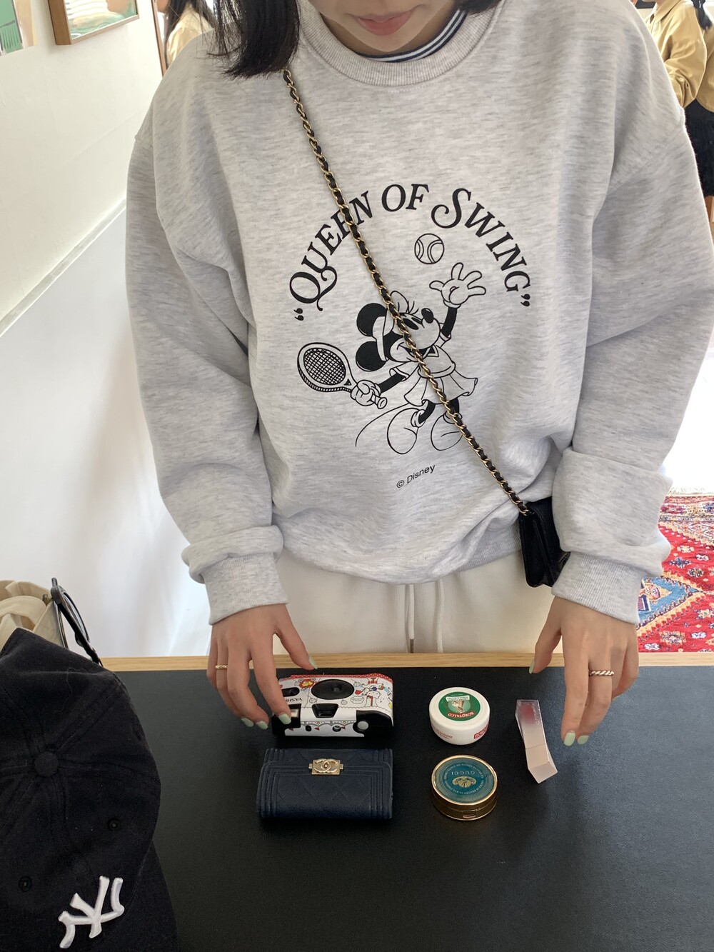 반팔티와 같은 테니스 라인으로 나온 맨투맨이며미니마우스의 귀여운 프린팅이 그려져는 맨투맨입니다.