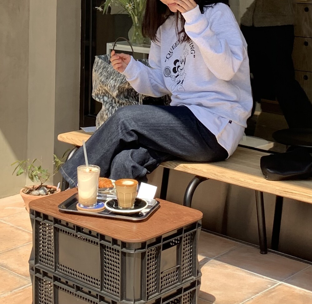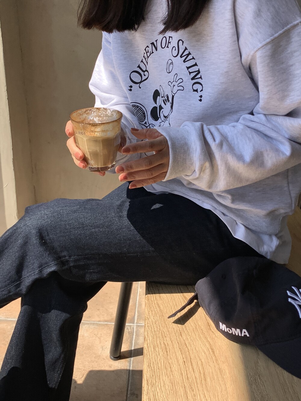 요즘 느낌으로 레이스 화이트 스커트나 캐쥬얼한 느낌으로 트레이닝 팬츠를 매치해도 너무 좋아요.