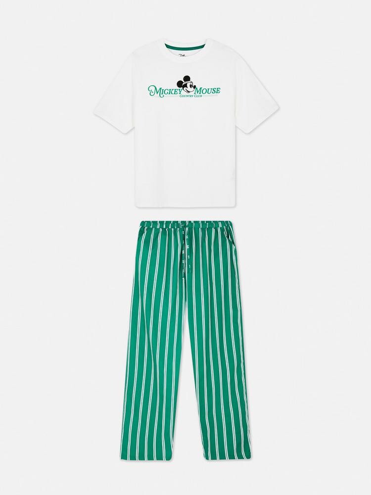 미키마우스 그래픽이 있는 파자마 세트, 적당한 기장감의 상의와 끈으로 묶는 하의로 구성!
