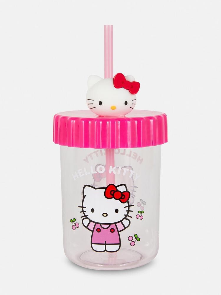곱슬 빨대가 달린 헬로 키티 뚜껑이 사랑스러운 플라스틱 텀블러에요 !