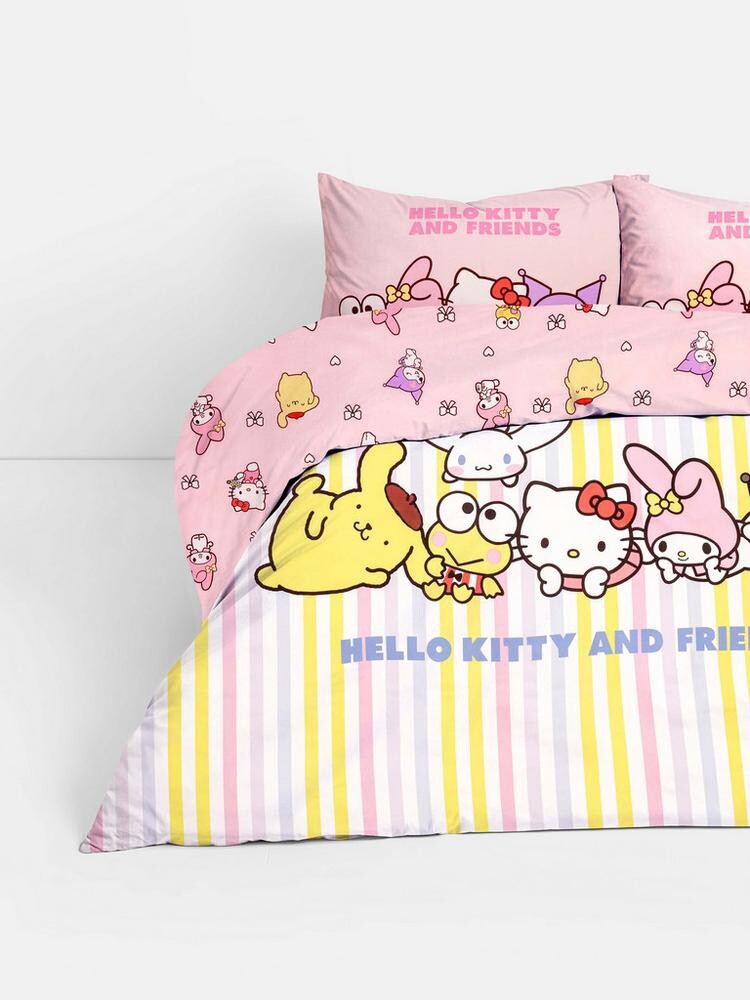 9. 양면 헬로 키티와 친구들 싱글 이불 커버 세트