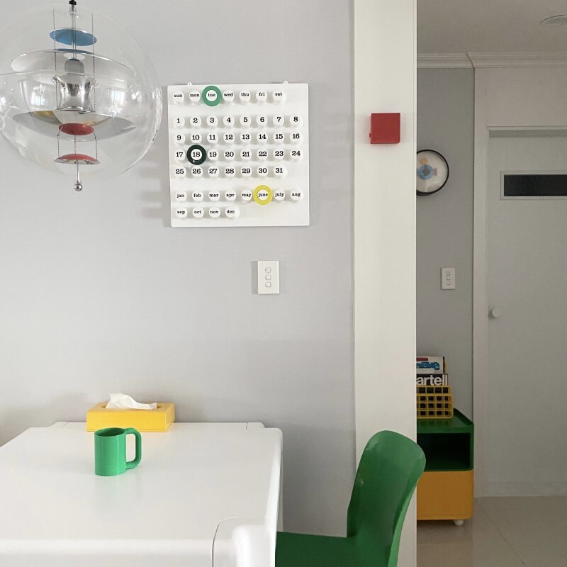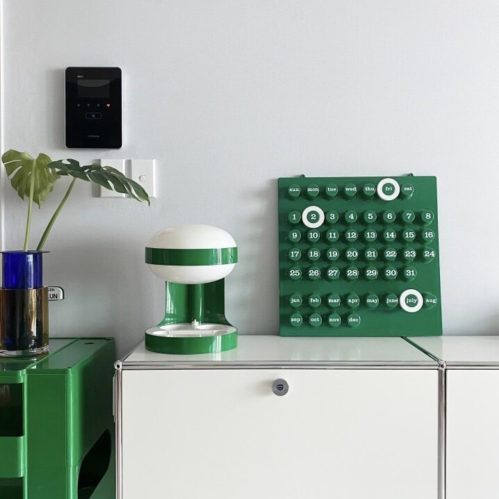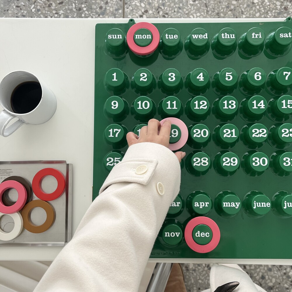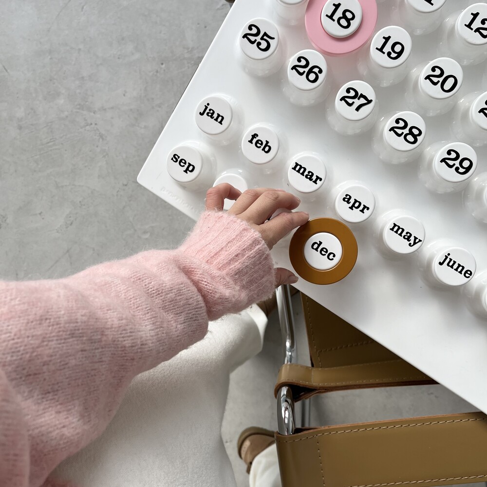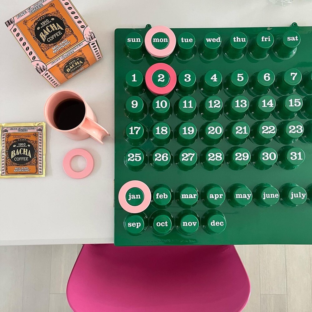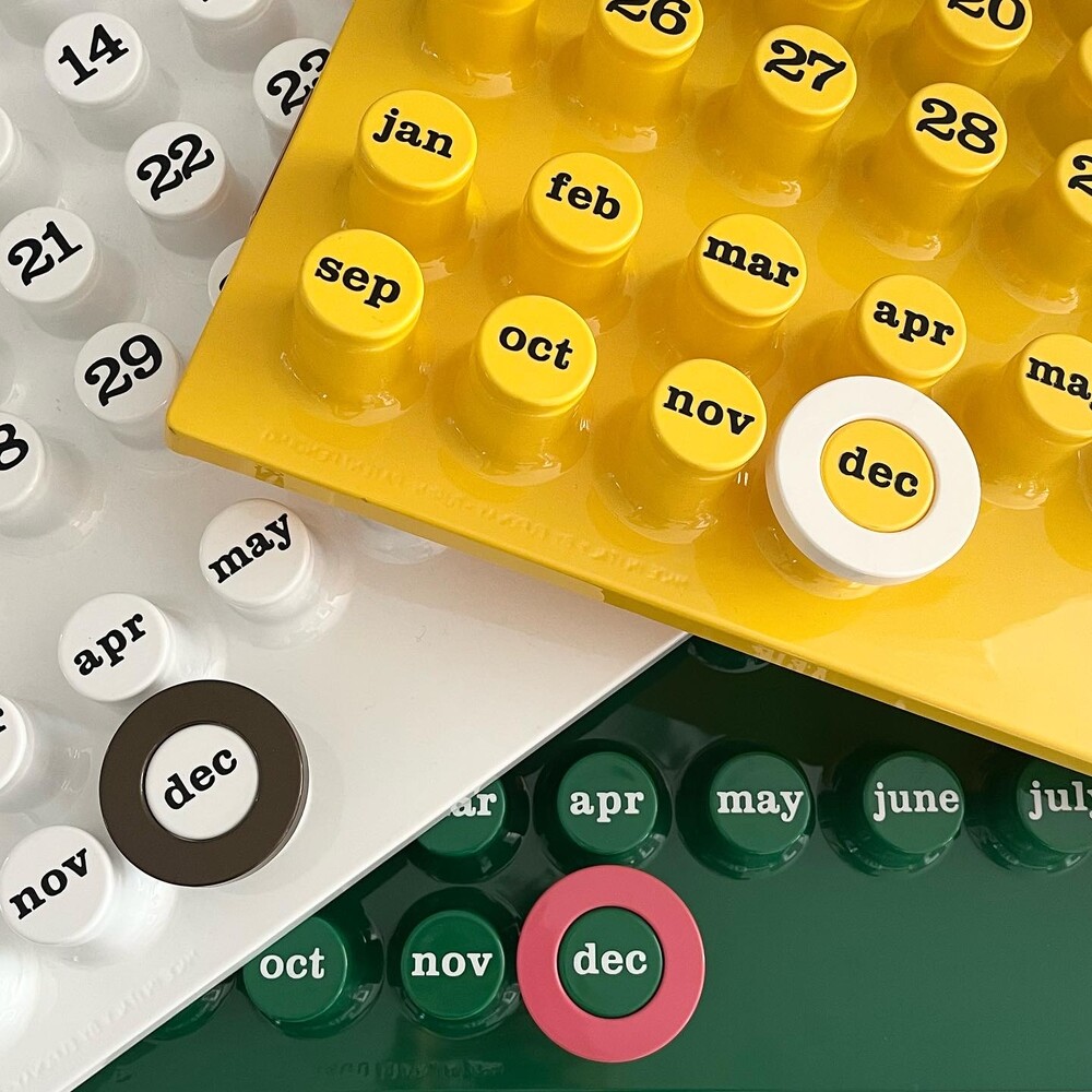 Ring-a-Date Calendar에 대해 소개해드리겠습니다. "Euroway®"브랜드는 1968 년에 탄생했습니다.그 해에 주요 창립자 인 Giorgio Della Beffa가 디자인 한 "Ring a Date Perpetual Calendar"는 전세계의 대중들에게 인정을 받았습니다. 그 후 뉴욕의 "현대 미술관"(MoMA)에서 수년간 지속되는 전시회로 성공을 거두었습니다. 이후 사진에서 볼 수 있듯이 큰 성공을 거두어 테이블 버전과 중간 크기의 버전이 생산되었습니다. 70년대 이후 이탈리아 매거진 영화등에 등장하며 대중화를 얻기 시작했으며 현 2025년까지도 제품의 신뢰 ,믿음을 바탕으로 꾸준하게 판매가 이루어지고 있습니다. 2021년 새로운 라인업으로 베이스 컬러가 화이트,엘로우,그린 세가지입니다. 화이트 컬러는 는 조금더 차분하고 따뜻한 컬러의 느낌을 담아 제작 되었으며 다른 컬러의 링과 색조합을 했을때 매치가 더 잘 됩니다. 엘로우 컬러는 즐거우며 낙천적이며 화창한 미래를 연상시키게 하는 컬러구요. 긍정적인 효과를 주기위한 산뜻한 컬러입니다. 그린컬러는 싱그러움 마음의 여유 그리고 편안함을 더해주는 컬러입니다. Ring-A-Date Calendar 달력은 어떠한 공간과 브랜드에 구애 없이 매칭이 가능하며, 상업적인 공간에서도 유니크한 인테리어를 완성시킬 수 있는 아이템입니다. Ring-a-Date Calendar 왼쪽 옆 아래 위조방지를 막기위해서 금속판 홀로그램을 이용하여 정품인증을 하였습니다.
