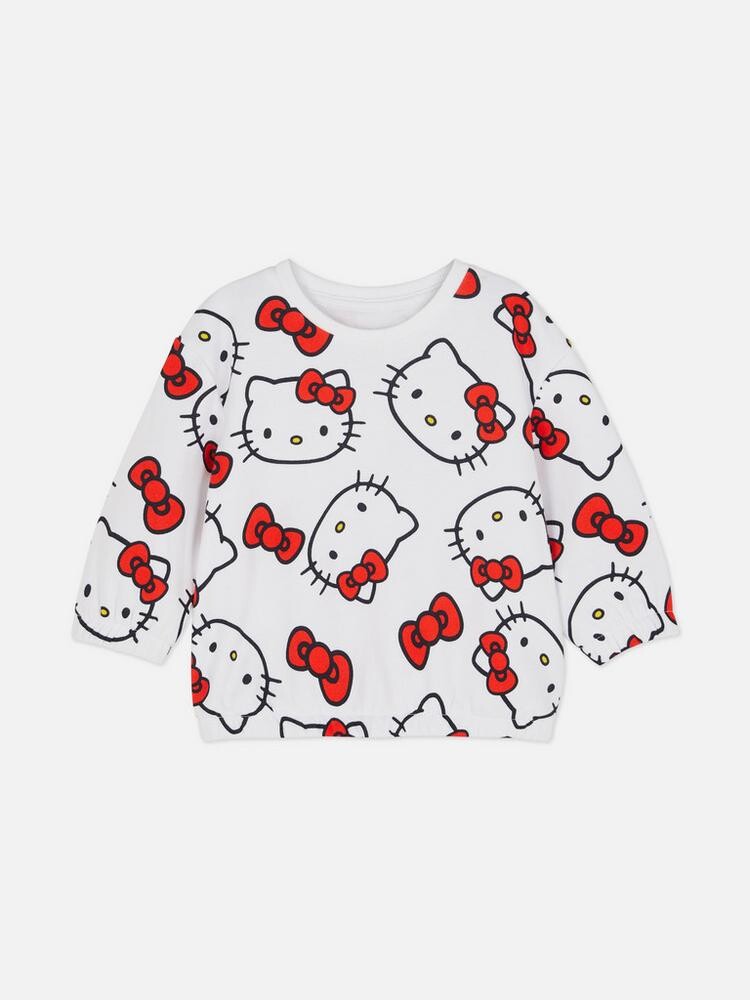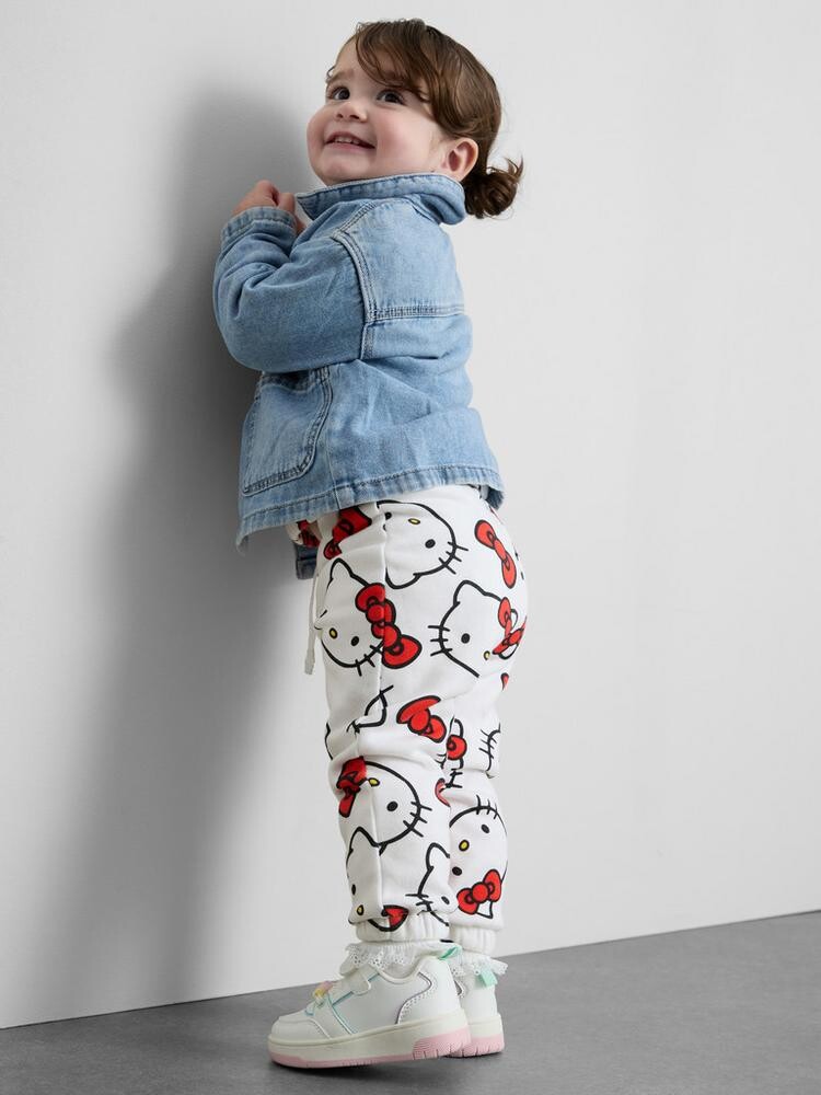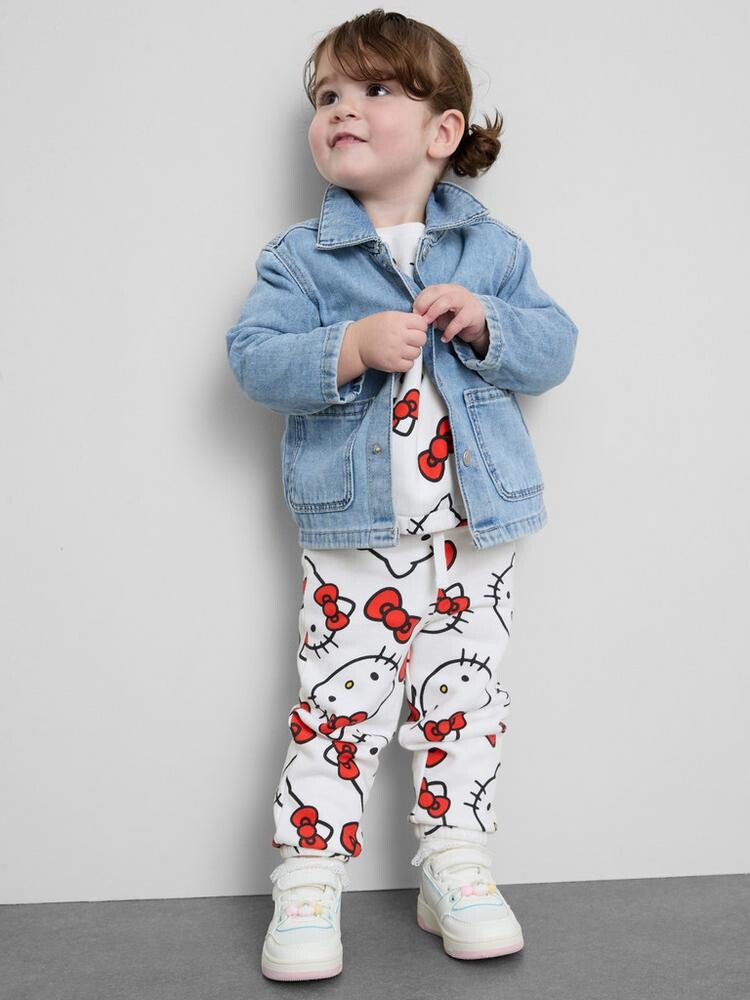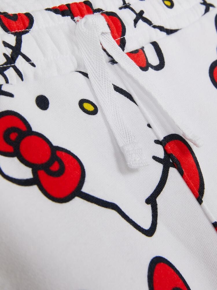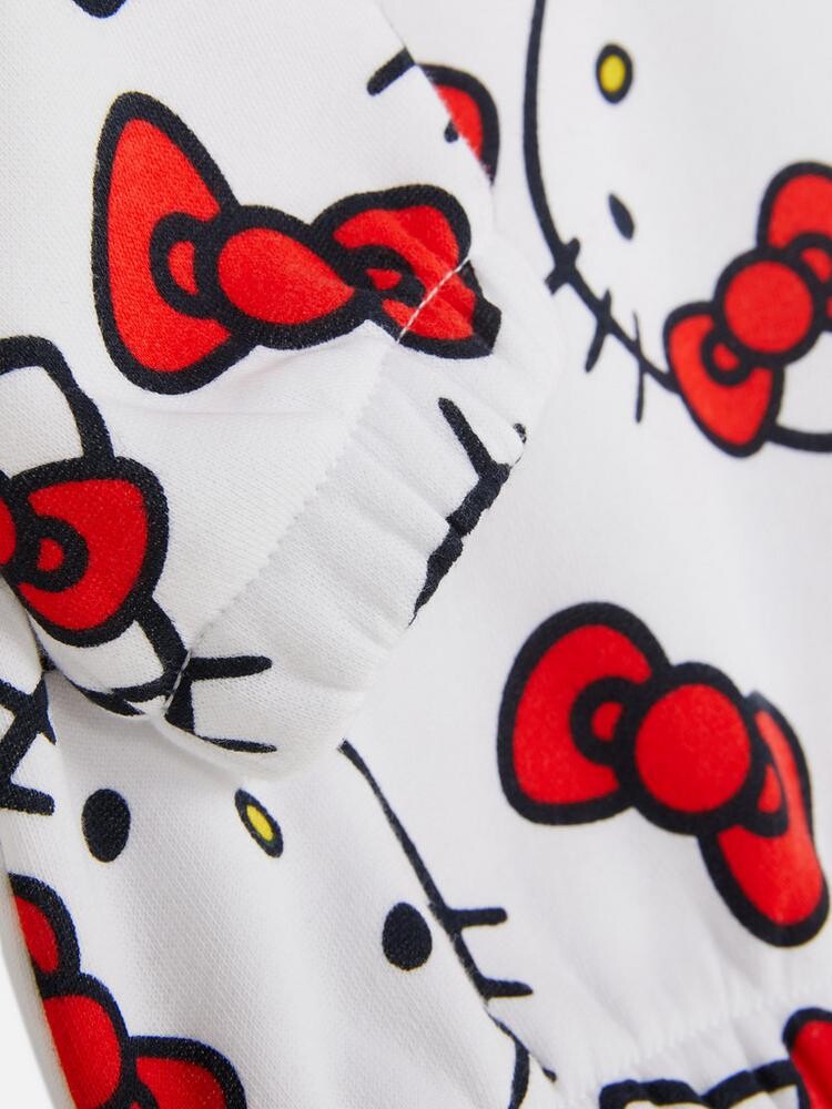 소매단에 고무줄 처리가 되어 있고 전체적으로 헬로 키티 캐릭터 디자인의 스웨셔츠 + 조거 팬츠 에요 ! 세트로 입어도 이쁘고 단품으로 입어도 이쁜 상품이에요