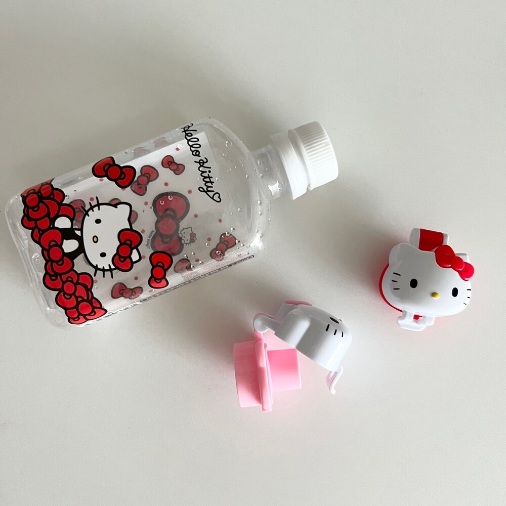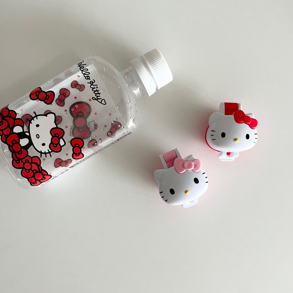 -생수나 음료 뚜껑 대신 끼워 재사용 할 수 있는 제품입니다. 평범한 물도 예쁜 키티 제품으로 바뀔 수 있어요. 디자인 레드 헬로 키티는 일회용 빨대가 포함되어 있어요.