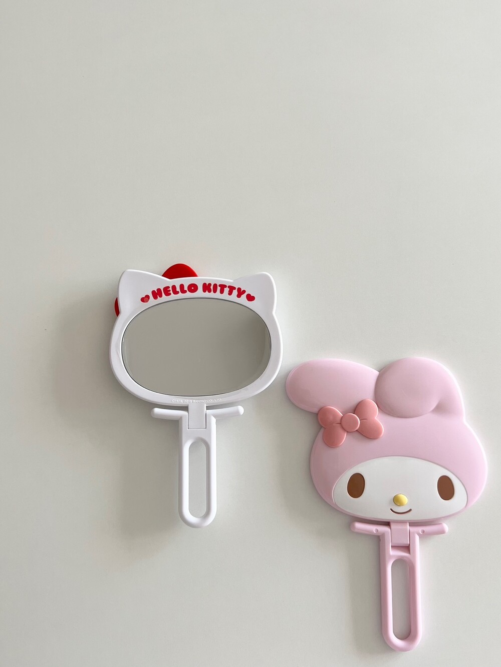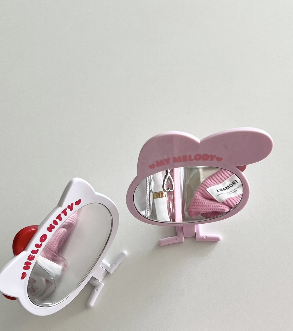 귀여운 마스코트들의 페이스미러에요. 손잡이를 구부리면 스탠드 미러가 된답니다.