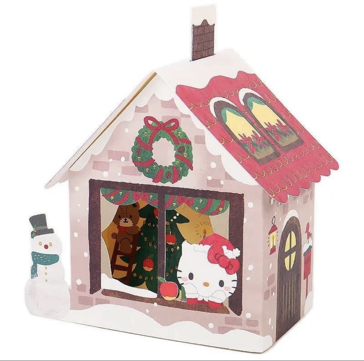 크리스마스 키티 입체 카드 이구요 ! 입체로 펴서 세워서 인테리어 오브제러 사용도 가능해요 🎄카드를 펼치면 창문사이로 곰돌이와 크리스마스 트리가 쨘하고 나타나요 🧸🎄 뒷면에 따뜻한 메세지 적을공간도 준비되어 있어요 🙏🏻