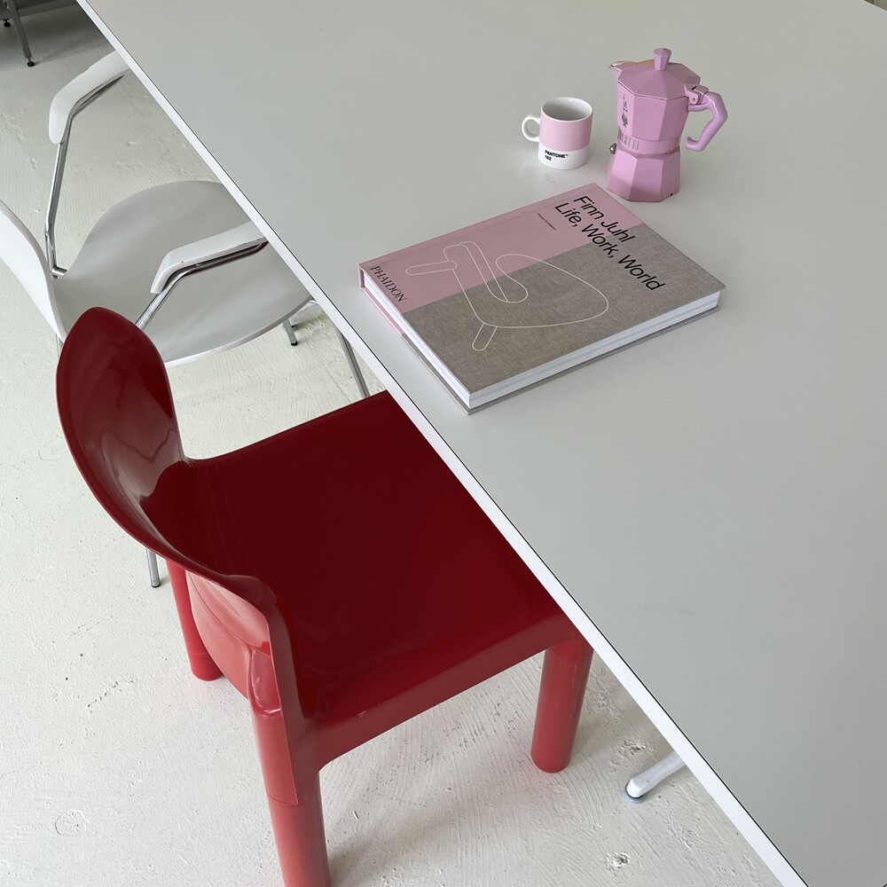 - Carlo Bartoli (카를로 바르톨리) 디자인하고Kartell사에서 제작한 4875체어에요. 카르텔하면 연상되는 제품 중 하나로 아주 유명한 4875 체어에요. 4개의 다리가 분리되는 디자인으로 보관도 용이해요.제품의 상태는 의자 특성상 모서리 부분 사용감과 생활기스가 있어보여요.다리 부분 쪽 컬러가 약간 색바램이 보이나 자연스러운 빈티지 가구 특성이에요.